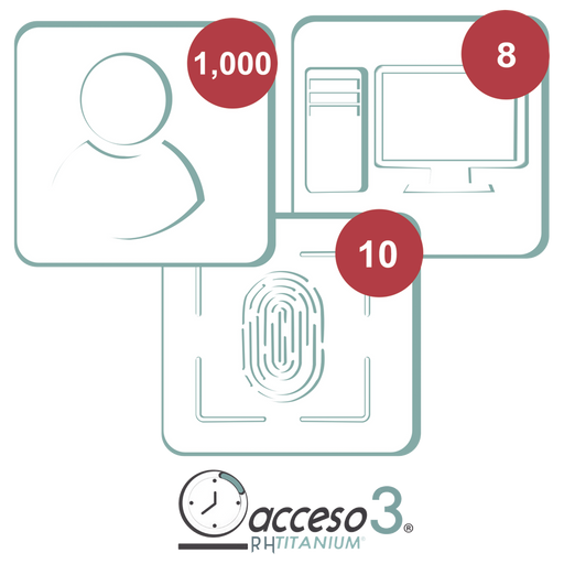 Ver todos los detallesTITANIUMIII-3A [BAJO PEDIDO] Licencia de 3 años para software Acceso3 TITANIUM / 1000 Empleados / 10 reloj / 10 PC