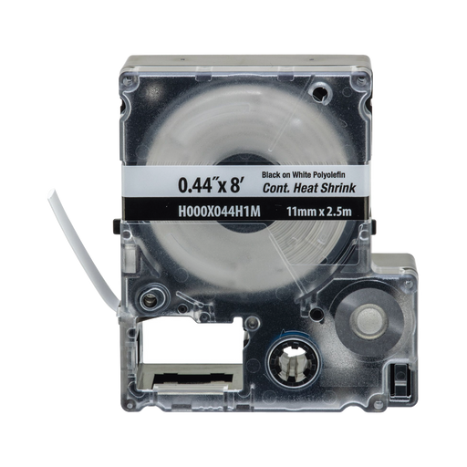 Ver todos los detallesH000X044H1M Casete de Etiquetas de Poliolefina de Cinta Continua, Tubo Termocontráctil, 11.2 mm (0.44 in) de Ancho y 2.4 m de largo, Para Cables de 2 a 6.4 mm (16-10 AWG) de Diámetro, Color Blanco