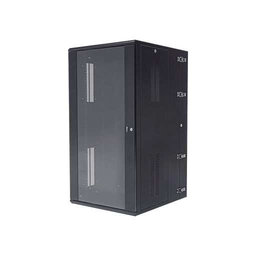 Gabinete PanZone de Montaje en Pared, de 19in, Puerta con Ventana de Seguridad, 18 UR, 762mm de Profundidad, Color Negro