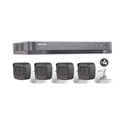 (MICRÓFONO INTEGRADO) KIT TURBOHD 5 Megapixel / DVR 4 Canales / 4 Cámaras Bala con Micrófono Integrado (exterior 2.8 mm) / Fuente de Poder / Accesorios de Instalación